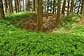 tumulus(rectangular portion to right, circular portion to left)