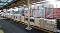 From August 2013, an experimental platform edge door system was installed for evaluation purposes at the Tokorozawa end of platform 1 for a period of approximately 8 months.[3] The "Dokodemo Saku" (どこでも柵) platform edge door system jointly developed by the University of Tokyo and Kobe Steel is designed to handle trains with three or four doors per car, and the temporary installation is just one car length long.[4]