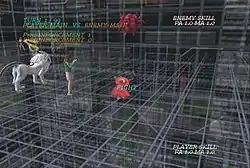 At certain points in the game, the player also enters a "hacking" mode, which plays out in a real-time strategy simulation: the protagonist and their companions navigate within closed arenas along pre-set pathways, knocking out nodes blocking the path, and defending against protection bots attempting to stop them.[4][5] As the player progresses through the game, the character makes dialogue choices that are mapped across a three-by-three alignment matrix: three "down" (Law, Neutral and Chaos), and three "across" (Light, Neutral and Dark). The protagonist's current alignment not only influences the story, but also the loyalty and responsiveness of demon party members.[4][5][6][7]