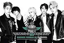 Shinee World III (promoted as SHINee CONCERT "SHINee WORLD III") is the third concert tour by South Korean boy group, Shinee. The tour kicked off with a two-day special concert in Seoul, on March 8 and 9, 2014. It continued to six other countries—Taiwan, China, Indonesia, Mexico, Chile, Argentina—with Shinee performing in a total of seven cities.[1] Their first ever world tour, it gathered over 67,000 fans over its short eight-date, four-month run, making it one of the most successful concert events of the year.