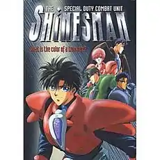 The Special Duty Combat Unit Shinesman (特務戦隊シャインズマン, Tokumu Sentai Shainzuman) is a Japanese anime OVA of two episodes. It was released in Japan on February 21, 1996. It is based on the Manga comic art of Kaimu Tachibana and Hideki Sonoda, and directed by Shinya Sadamitsu. The character designer was Akiharu Ishii. The video was produced by Gakken, Aniplex, and Movic. The film has been dubbed into English by Media Blasters, and released on both Region 1 and 2 DVD.