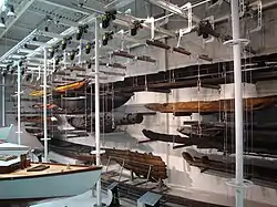The studio warehouse serves as a large exhibition space. Along one of the walls, historical boats and boat fragments are hung. The boats originate from Poland (the oldest presented boats were built in the 5th and 7th centuries AD) and Africa (acquired by Polish ship crews).[6] The exhibition also features a collection of kayaks from the 1930s to 1950s.