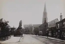 As Headingley grew the oak was incorporated into Otley Road and Saint Michael's Church was constructed to the south of it.[3][4] Two pubs opposite the church, the Skyrack and the Original Oak were both named after the tree.[2]