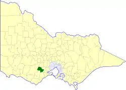 Leigh Shire was first incorporated as the Shelford road district in 1861, and was renamed Leigh at the time of its redesignation as a shire on 22 March 1864.[2]