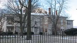 Shirk-Edwards House is a historic home located at Peru, Miami County, Indiana. It was built about 1862, as a two-story, Italianate style brick mansion. It was renovated in 1921 in the Classical Revival. It rests on a limestone foundation and has a low-pitched hipped roof. The front facade features a full-width, two-story porch supported by four full and two engaged columns.[2]: 5–6
