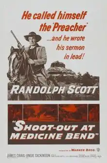 Shoot-Out at Medicine Bend is a 1957 American Western film directed by Richard L. Bare and starring Randolph Scott, James Craig, Angie Dickinson and James Garner.[1] It was the final film that Scott made with Warner Bros.