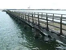 Shotley Pier was constructed by Frederick Hervey, 3rd Marquess of Bristol in 1894.[1][2] It was a railway pier, used by the Great Eastern Railway for a ferry connection between Shotley, Suffolk, and Harwich, Essex, across the mouth of the River Stour.[3] It's main cargo was mail and coal as well as munitions and sailors associated with nearby Royal Navy facilities such as the training establishment HMS Ganges in Shotley.[2][4]