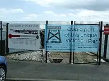 The society planned to restore the pier, though their initial planning application was rejected by Babergh District Council in August 2018. A revised proposal was submitted, with toilets and café structures that were said to be more Victorian in appearance.[1] The society asked for sponsors to purchase individual deck planks to help fund the restoration.[11] These cost £100 each and, when installed, included a plaque with the sponsor's name on it.[2][10] Additional funding came from the Coastal Revival Fund and European Union Rural Development Fund. The initial stage of restoration, of the first 30 metres (98 ft) of the pier, was completed in 2020.[2]