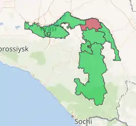 Shovgenovsky District (Russian: Шовгеновский район, romanized: Šovgenovskij rajon; Adyghe: Шэуджэн къедзыгъо, romanized: Ṩəwdjən qyedzığo) is an administrative[1] and a municipal[6] district (raion), one of the seven in the Republic of Adygea, Russia. It is located in the central northern portion of the republic and borders with Ust-Labinsky District of Krasnodar Krai in the north, Kurganinsky District of Krasnodar Krai in the north and northeast, Koshekhablsky District in the east and southeast, Giaginsky District in the south, Belorechensky District of Krasnodar Krai in the southwest, and with Krasnogvardeysky District in the west. The area of the district is 521.43 square kilometers (201.33 sq mi).[2] Its administrative center is the rural locality (an aul) of Khakurinokhabl.[1] As of the 2010 Census, the total population of the district was 16,997, with the population of Khakurinokhabl accounting for 23.8% of that number.[3]