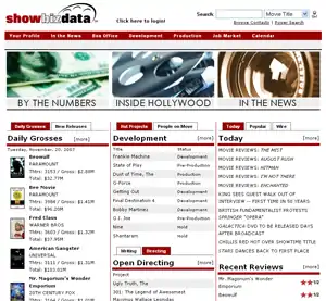 ShowBIZ Data is a website that tracks domestic and international box office and other performance related information. Established by producer Oliver Eberle in 1997, and based on the principle that understanding the information based upon which movies are made is key to working in Hollywood, ShowBIZData.com is a comprehensive entertainment industry database online. The company's flagship service provides entertainment professionals and enthusiasts with a fast and easy way to obtain detailed information about the film industry.