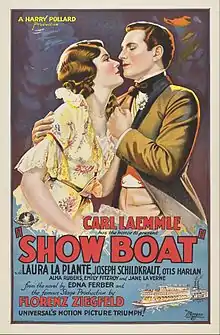Show Boat is a 1929 American romantic drama film based on the 1926 novel Show Boat by Edna Ferber. The film initially did not use the 1927 stage musical of the same name as a source, but scenes were later added into the film incorporating two of the songs from the musical as well as other songs. This version was released by Universal in two editions, one a silent film for movie theatres still not equipped for sound, and one a part-talkie with a sound prologue.