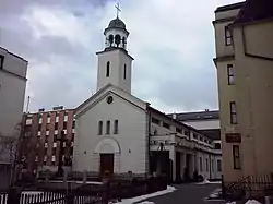The Shrine of St. Faustina (Polish: Sanktuarium św. Faustyny) is a Roman Catholic church located in Warsaw; it is the center of the Divine Mercy and St. Faustina Parish. From 1863 to 1944 the building served as internal chapel within the Sisters of Our Lady of Mercy monastery compound; destroyed during the Warsaw Uprising, it remained a ruin until the early 21st century, when it was brought to the current shape. The church and its immediate surroundings gained nationwide iconic status in the 1980s; the premises became the hub of independent art, strongly flavored with opposition to the official political regime. Currently the church is known mostly as related to Saint Faustina, who entered the neighboring monastery in 1925.