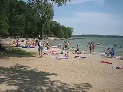 The rustic style stone structures in the park were constructed by the Civilian Conservation Corps between 1935 and 1938. These structures are now listed on the National Register of Historic Places. The layout of the park was a very functional example of master planning because it reduced congestion and overcrowding for swimmers, picnickers, and campers. It is rumored that a secret cache of memorabilia and other various items are buried underground in one of the park areas near the beach.