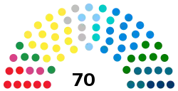 With the modification of the law in 2013, the number of deputies dropped to 70 beginning with the regional elections of 2017. The selection process in this current system has the following parameters: