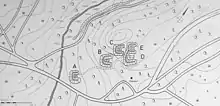 In 1958, the graves were enclosed by protective earthen walls[2] several metres high. They protect the gravesites from shell damage, because the site is located in the middle of a live firing range.