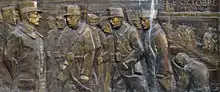 The last c. 30,000 men of the Antwerp garrison surrendered and the city was occupied by German troops until November 1918. 33,000 soldiers of the Antwerp garrison fled north to the Netherlands, where they were interned for the rest of the war, as far as possible from the Belgian border, for fear of compromising Dutch neutrality.[44] The British troops were interned at Groningen and the Belgians were accommodated at Zeist, Gaasterland, Amersfoort, and Oldebroek. The internees were employed in various industries. Germans who crossed the frontier were interned at Bergen.[45] About one million civilian refugees left in 1914 for Great Britain, the Netherlands and France; most returned after the siege but a sizeable number of the refugees in the Netherlands remained after 1918.[44] Several Belgian military refugees are nowadays buried or commemorated at the Belgian Military Field of Honour 1914–1918 in Harderwijk.[46]