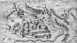 The siege of Castelnuovo ended the failed campaign of the Holy League against the power of the Ottoman Empire in the Eastern Mediterranean. Charles V began negotiations with Barbarossa to attract him to the imperial ranks but in vain, and turned all his efforts in a great expedition against Algiers to destroy the Ottoman sea power.[33] This expedition, known as the Journey of Algiers, ended in a disaster as a storm scattered the fleet and the army had to be reembarked having suffered heavy losses.[34] A truce between Charles V and Suleiman the Magnificent was signed in 1543. Castelnuovo remained in Ottoman hands for almost 150 years. It was recovered in 1687, during the Morean War, by the Venetian Captain-General at sea Girolamo Cornaro, who in alliance with Montenegrins under Vuceta Bogdanovic, won a great victory over the Ottomans near the town and put the fortress under Venetian rule.[35]