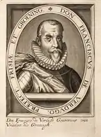 Coevorden itself was an important five bastion fortress in the east of the country and lay between two large marshes; the Bourtange swamp which was thirty miles to the bay at Dollart and the other spread as far as the Zuider Zee.[10] The only hard ground was the road heading towards Coevorden on a natural barrier of sand a half mile wide. At the time Coevorden was named as the third strongest fortress in Europe (after Antwerp and Milan), designed and built by Francesco Paciotto, the architect of the famous citadel of Antwerp.[11][12] The Spanish commander Francisco Verdugo had reported to Parma and the Governor ad interim Ernst von Mansield the immense importance of Coevorden and claimed the city was far more important than any others that had been taken that year by the Anglo-Dutch. Verdugo having been positioned in Groenlo and prepared with the veteran Spanish general Cristóbal de Mondragón to launch a strike against any potential siege.[8]