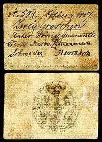 - Pick, Albert (1967). Papiergeld. Ein Handbuch für Sammler und Liebhaber. Bibliothek für Kunst- und Antiquitätenfreunde. Vol. 47. Klinkhardt&Biermann. p. 44.