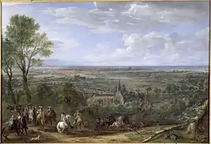 The siege of Lille took place during the War of Devolution. Louis XIV's forces besieged Lille from 10 August to 26 September 1667.[1] It was the only major engagement of the war. Lille was the first major victory for Vauban’s siege techniques. Louis XIV, arguing that the Spanish dowry of his wife Maria Theresa of Spain had not been paid, began to expand French borders to the north and east, invading the Spanish Netherlands. This began a conflict with Spain that became the War of Devolution. After taking Charleroi, Tournai and Douai, French troops laid siege to Lille, at that time part of the county of Flanders under Spanish rule. Siege techniques applied by the French military engineer Vauban were instrumental in their capture.