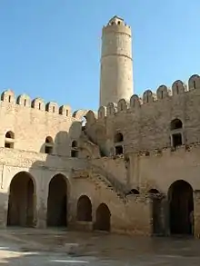 The Maltese islands had been part of the Byzantine Empire since 535 AD, and archaeological evidence suggests that they probably had an important strategic role within the empire.[1] When the early Muslim conquests began in the 7th century, the Byzantines were threatened in the Mediterranean, so probably efforts were made to improve the defences of Malta. At this point, they might have built a retrenchment which reduced Melite to one third of its original size.[2][Note 1]