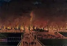 A monument was erected in Riga in 1913 for Barclay de Tolly, whose only part in defending Riga was the appointment of Magnus Gustav von Essen and the order to burn down the suburbs. In 1915 monument was removed, but in 2002 it was restored.[6] Essen died in Baldone sulphur spring on August 11 1813; there is an unconfirmed version of suicide as a result of depression (from both drowning and shooting).[7][8][9]