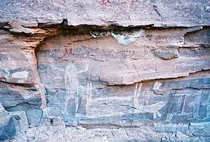The Sierra de Guadalupe cave paintings are a series of prehistoric rock art pictographs near Rancho La Trinidad, Mulegé in Baja California Sur, Mexico. The Sierra de Guadalupe, mountains west of Mulegé, contains the largest number of known prehistoric rock art sites in Baja California.[1]