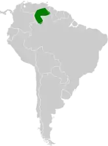 The Sierra de Lema flycatcher was described by the English ornithologist Charles Chubb in 1919 as a subspecies of the ochre-bellied flycatcher. He coined the trinomial name Pipromorpha oleaginea roraimae and specified the type location as Mount Roraima in the southeastern corner of Venezuela.[2] The specific epithet roraimae is a Latinized form of Mount Roraima.[3] It was treated as a subspecies of McConnell's flycatcher (Mionectes macconnelli) by the American ornithologist Clyde Todd in 1921.[4] It was split from the McConnell's flycatcher based on a study published in 2014 that showed that the two taxa differed in habitat choice, vocalization and display behaviour.[5][6]