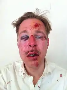 - Wilfred de Bruijn was beaten while walking with his boyfriend in the 19th arrondissement of Paris on April 7, 2013. De Bruijn later posted a photograph of his badly injured face on Facebook to raise awareness of homophobic attacks, attracting international media attention in the process.[81] The attack was executed by Taieb K. and Abdelmalik M.[82]
