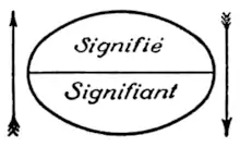 Saussure, in his 1916 Course in General Linguistics, divides the sign into two distinct components: the signifier ('sound-image') and the signified ('concept').[2]: 2 For Saussure, the signified and signifier are purely psychological: they are form rather than substance.[5]: 22