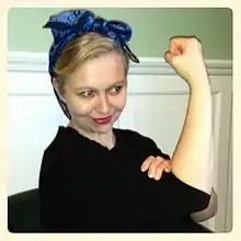 Sigríður Ingibjörg Ingadóttir posing as Rosie the Riveter (2014)