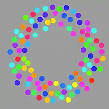Silencing is a visual illusion in which a set of objects that change in luminance, hue, size, or shape appears to stop changing when it moves. It was discovered by Jordan Suchow[2] and George Alvarez[3] of Harvard University, and described in a paper published in Current Biology.[4] Silencing won the Neural Correlate Society's "Best visual illusion of the year contest" in 2011.[5]