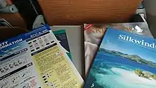 SilkAir offered a selection of newspapers and magazine titles on board and screened a series of short features on its 11-inch overhead dropdown screens. The Silkwinds inflight magazine was complimentary for all passengers. In-seat audio and power supply were available exclusively on its Boeing aircraft.