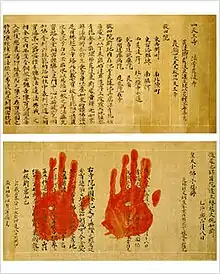 The head temple of the Tokishu sect, Seikō-ji, which holds this work, has a historical document called "The Genealogy of the Twelfth Sonkan Shonin," of which three documents record the history of this work .[13] It is sometimes referred to as the Shōjōkō-ji Record, [14] as if the three documents were separate, but in fact they are three sections of the same document [13] -In 2014, a paper by Motohiro Toyama, director of the Shōjōkō-ji Treasure Museum, published a photograph and reprinted the entire genealogical tree for the first time .[15]