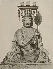 The production was supervised and Kaigen[lower-alpha 1] was done by Monkanbo Koshin .[2] Monkan was a Buddhist priest of the Shingon Ritsushu and Daigo schools of Shingon Buddhism, and served as the head of Daigo-ji, Shitennō-ji, Bettō, and the first chief priest of Toji in the Go-Daigo dynasty, as well as the head of all Buddhist affairs in the Sōkan of the Ritsuryo system. He was one of the most important figures in Emperor Go-Daigo's Buddhist policy and beliefs.