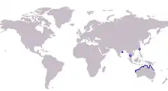 The bay whiting is known from a fairly patchy distribution, inhabiting the Gulf of Thailand, India, Taiwan and northern Australia from Shark Bay around the northern coast to Adolphus Passage, north-eastern Queensland.[4] McKay suggests that it may be far more widespread, but commonly misidentified as S. argentifasciata, or in the case of small subsistence fisheries, has not been reported at all.