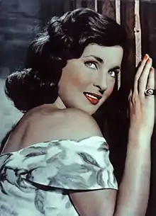It was her singing teacher's idea to make her participate in the Miss Italy contest which had been cancelled during the war. Tall, attractive and self-confident, she was riotously appreciated by the audience, not by the panelists who had to hide themselves and call the police when they selected another girl whose beauty was more sophisticated and less eye-catching. A few days later both contestants were interviewed by the Italian national radio in Rome but the broadcasting was abruptly interrupted when the two young ladies started to quarrel and pull each other's hair. Later Miss Pampanini was wrongly reported as Miss Rome of 1947.[1] A caption in a 1952 newspaper said, "She is considered Italy's all-time beauty."[2] Actually in post-war Italy most young film actresses were selected from beauty pageants. Because of her physical looks and public persona Silvana was compared first to Deanna Durbin, then to Jane Russell.