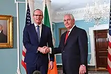 After Leo Varadkar was appointed Taoiseach, by the President of Ireland, as part of his new cabinet, Coveney was appointed Minister for Foreign Affairs and Trade, with special responsibilities for Brexit.[21] Coveney replaced Charles Flanagan, who became Minister for Justice and Equality. It was understood Coveney heavily lobbied Varadkar for the role as he wanted a large role on Brexit. In his capacity as Minister, he has also been co-chairing the European People's Party (EPP) Justice and Home Affairs Ministers Meeting since 2018, alongside Esteban González Pons.[22]