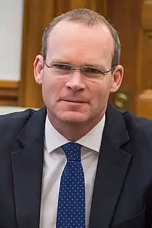 Simon Coveney (born 16 June 1972) is an Irish Fine Gael politician who has served as Minister for Foreign Affairs and Deputy Leader of Fine Gael since 2017 and Minister for Defence since 2020. He has served as a Teachta Dála (TD) for the Cork South-Central constituency since 1998. He previously served as Tánaiste from 2017 to 2020, Minister for Housing, Planning, Community and Local Government from 2016 to 2017 and Minister for Agriculture, Food and the Marine from 2011 to 2016. He also served as a Member of the European Parliament (MEP) for the South constituency from 2004 to 2007.[1]