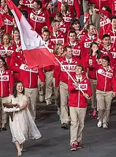 Simon St. Quentin Whitfield (born 16 May 1975 in Kingston, Ontario) is a retired Olympic triathlon champion from Canada. Whitfield won 10 consecutive Canadian Triathlon Championships titles and carried the Canadian national flag during the 2000 Summer Olympics closing ceremony in Sydney, where he had won his gold medal, and the opening ceremony at the 2012 Summer Olympics in London, making him one of few Canadian athletes to be honoured twice as Olympic flag bearer.