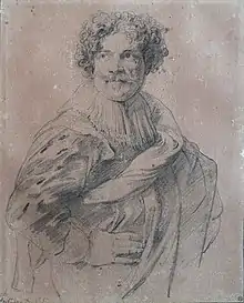 Simon de Vos (20 October 1603 in Antwerp – 15 October 1676 in Antwerp) was a Flemish painter, draughtsman and art collector. He started his career making small-format cabinet pictures of genre scenes, in particular of Caravaggesque merry companies. Later he switched to history painting, working on larger formats in a Flemish Baroque style which was influenced by Rubens and van Dyck.