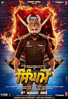 Singham is a 2019 Indian Punjabi-language action film written by Dheeraj Rattan and directed by Navaniat Singh. Co-produced by T-Series, Ajay Devgn Films and Panorama Studios, it stars Parmish Verma, Kartar Cheema and Sonam Bajwa, along with Sardar Sohi, Rupinder Rupi, Anita Devgn, and Hardeep Gill in supporting roles. It is an official remake of Hindi film Singham (2011), which itself is a remake of 2010 Tamil film of same name. The film chronicles the story of righteous cop Dilsher Singh, who fights against drug peddlers in his village Singham Khurd.