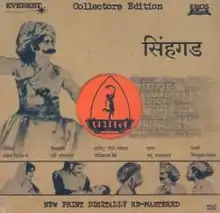 Sinhagad is a 1933 Marathi historical fact film directed by V. Shantaram.[1] The production company was Prabhat Film Company. The story was based on Hari Narayan Apte's literary classic novel "Gad Ala Pan Sinha Gela" (I Won The Fort But Lost A Lion).[2] Apte was a famous Marathi novelist of the early twentieth century.[3] The story's screenplay and dialogue were written by Govindrao Tembe who also provided the music for the film. The cinematographers were V. Avadhoot and Keshavrao Dhaiber.[4] The cast included Master Vinayak, Baburao Pendharkar, Keshavrao Dhaiber, Leela Chandragiri, Shinde, Prabhavati, Budasaheb and Shankarrao Bhosle.[5]