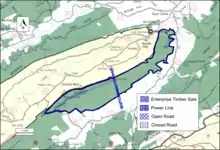 The Enterprise timber sale, a 65-acre area on the eastern end, was approved in 2002. The Enterprise Road was lengthened by 1.2 miles for the sale, but the new road is now closed to motor vehicles.[2]