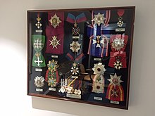 Madden was given command of the 1st Battle Squadron, as second in command of the Grand Fleet with his flag in the battleship HMS Marlborough in December 1916 later transferring his flag to the battleship HMS Revenge.[16] He was awarded the Russian Order of St. Anna 1st class (with swords) on 5 June 1917,[21] given the Japanese Grand Cordon of the Order of the Rising Sun on 29 August 1917[22] and appointed a Grand Officer of the Belgian Order of Leopold on 29 November 1918[23] as well as being awarded the French Croix de Guerre on 15 February 1919[24] and the Chinese Order of the Striped Tiger on 22 January 1920.[25] He was also advanced to Knight Grand Cross of the Order of the Bath on 1 January 1919[26] and promoted to full admiral on 19 February 1919.[27]