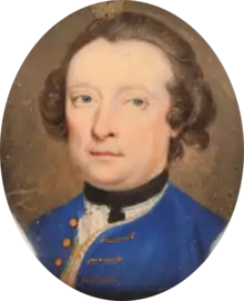 Fury at this led many Tories to seek support from the exiled Stuarts; Douglas was related by marriage or blood to a number of those involved in the 1745 Rising, including James Maxwell of Kirkconnell, Lord Elcho and the 5th Earl of Traquair (1699-1764).[6] In January 1746, Douglas visited Charles during the siege of Stirling. Despite their failure to join the invasion of England, he brought messages of support from the English Jacobite leaders Lord Barrymore and Sir Watkin Williams Wynn, and assurances £10,000 was in London 'awaiting (his) use.'[7] Murray of Broughton, who arranged the meeting, later stated he was surprised, 'never having suspected (Douglas) to be in the Pretender's interest.'[8]