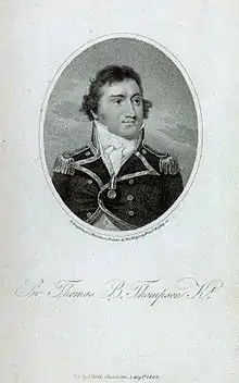 Sir Thomas Boulden Thompson, 1st Baronet, GCB (28 February 1766 – 3 March 1828) was an officer of the Royal Navy. He served during the American Revolutionary, French Revolutionary and Napoleonic Wars, eventually rising to the rank of Vice-Admiral. He was one of Horatio Nelson's Band of Brothers at the Battle of the Nile in 1798 and Comptroller of the Navy from 1806 to 1816.