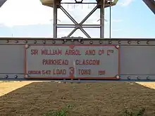 ![]() Name plate on the 1911 Arrol & Co.-built Jetty Crane in Bunbury, Western Australia | |