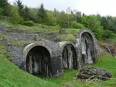 The ironworks established in the village were first established in 1778 operated by William Borrow, Rev. Matthew Monkhouse and Richard Fothergill[6] and are of regional and national significance, and are well preserved.[7] It supplied first Tredegar Ironworks and later Ebbw Vale Ironworks with pig iron. In 1818 the works were acquired by James Harford of Harford, Partridge and Co. of Ebbw Vale.[6] By 1877 it was overproducing iron and was partly demolished, however it continued to produce coke until 1905.[7] The remains of the site include the three masonry arches, furnace base, waterwheel tunnel, and other earthworks.[7] It is a scheduled monument listed by Coflein and Visit Wales and is open to visitors.[6]