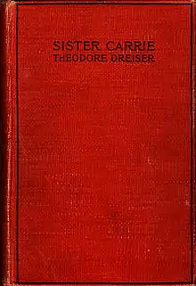![]() Sister Carrie first edition 1900. The publishers kept the cover intentionally bland in order not to promote what was expected to be a controversial work.[1] | |